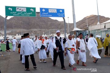 Suasana di Mina saat puncak musim haji, suasana di tenda-tenda di Mina, Minggu (11/8/2019) saat puncak musim haji sangat ramai dan padat. Jamaah berlalu lalang sebagian di antaranya berombongan ke Jamarat untuk melontar jumrah. ANTARA/Hanni Sofia/pri