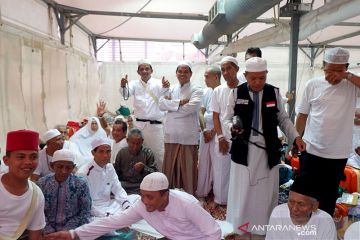 Aktivitas jamaah di tenda pria dari Indonesia di Mina, Minggu (11/8/2019). Banyak dari mereka memilih untuk tetap berada di dalam tenda karena masalah yang kerap kali muncul adalah tersesat dan terpisah dari rombongan. ANTARA/Hanni Sofia/pri