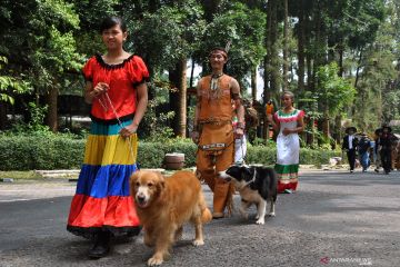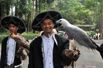 Sejumlah peserta mengikuti parade satwa di Taman Safari Indonesia (TSI), Cisarua, Kabupaten Bogor, Jawa Barat, Senin (12/8/2019). Parade satwa TSI Bogor yang digelar dalam rangka menyambut HUT ke-74 Kemerdekaan RI tersebut diharapkan dapat menggugah pengunjung untuk mencintai dan menyayangi satwa serta daya tarik untuk meningkatkan jumlah kunjungan wisatawan. ANTARA FOTO/Arif Firmansyah/hp.