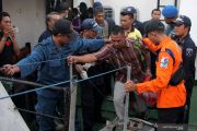 Petugas gabungan membantu korban selamat kapal terbakar KM Santika Nusantara turun dari KN Chundamani P 116 di Dermaga Jamrud Utara, Pelabuhan Tanjung Perak, Surabaya, Jawa Timur, Sabtu (24/8/2019). Sebanyak 53 penumpang selamat tiba di Surabaya dengan Kapal KN Chundamani P 116. Kapal tersebut juga membawa tiga jenazah korban meninggal dunia dari Pulau Masalembo. ANTARA FOTO/Didik Suhartono/wsj.