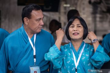 Dua Capim KPK dari unsur Polri, Kapolda Sumsel Irjen Pol Firli Bahuri (kiri) bersama Kepala Biro Perawatan Personel SSDM Polri Brigjen Pol Sri Handayani (kanan) bersiap mengikuti tes kesehatan Calon Pimpinan Komisi Pemberantasan Korupsi (Capim KPK) di RSPAD Gatot Soebroto, Jakarta, Senin (26/8/2019). Sebanyak 20 orang yang dinyatakan lolos dalam tes "profile assessment" Capim KPK masa jabatan 2019-2023 mengikuti tes kesehatan tersebut. ANTARA FOTO/Aprillio Akbar/pras.