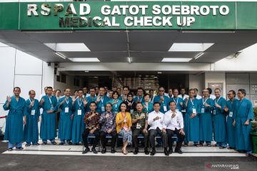 Ketua Pansel Capim KPK Yenti Garnasih (ketiga kiri bawah) bersama Kepala RSPAD Gatot Soebroto Mayjen TNI dr Terawan Agus Putranto (ketiga kanan bawah) berserta masing-masing jajaran dan 20 peserta tes kesehatan Calon Pimpinan Komisi Pemberantasan Korupsi (Capim KPK) berfoto bersama di RSPAD Gatot Soebroto, Jakarta, Senin (26/8/2019). Sebanyak 20 orang yang dinyatakan lolos dalam tes "profile assessment" Capim KPK masa jabatan 2019-2023 mengikuti tes kesehatan tersebut. ANTARA FOTO/Aprillio Akbar/pras.
