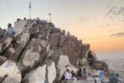 Menikmati matahari terbit pertama (sunrise) di puncak Jabal Nur menjadi kesempatan yang langka, Senin (26/8/2019). Jabal Nur menjadi tempat wisata ziarah yang paling diminati karena terdapat Gua Hira di puncaknya sebagai tempat Nabi Muhammad menerima wahyu yang pertama. ANTARA/Hanni Sofia/am.