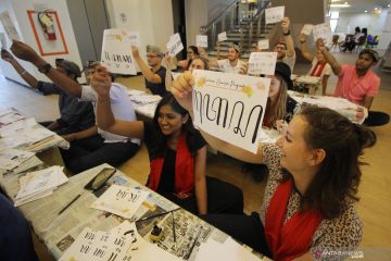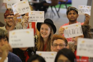 Sejumlah mahasiswa asing membuat tulisan aksara Jawa saat mengikuti "Ubaya Summer Program 2019" di Universitas Surabaya (Ubaya), Jawa Timur, Kamis (29/8/2019). Kegiatan yang diikuti 26 mahasiswa asing dari 10 negara tersebut untuk mengenalkan kebudayaan yang ada di Indonesia salah satunya tulisan aksara Jawa. ANTARA FOTO/Moch Asim/hp.