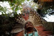 Tetua suku Shenanewa mengikuti festival untuk merayakan alam di desa pedalaman Morada Nova, Acre State, Brazil, Minggu (1/9/2019). Acara tersebut juga menyerukan penyelamatan hutan Amazon dari kebakaran. ANTARA FOTO/REUTERS/Ueslei Marcelino/foc.