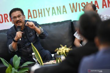 Direktur Utama Perum LKBN Antara Meidyatama Suryodiningrat (tengah) memberikan paparan dalam diskusi jurnalistik, di Wisma Antara, Jakarta, Kamis (5/9/2019). Diskusi tersebut bertema 'Self Censorship and Self Restraint' di Ruang Redaksi Media Massa. ANTARA FOTO/Aditya Pradana Putra/hp.