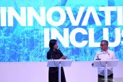 Menteri Keuangan Sri Mulyani Indrawati (kiri) dan Ketua Dewan Komisioner Otoritas Jasa Keuangan ( OJK) Wimboh Santoso berdiskusi pada Indonesia Fintech Summit & Expo 2019 di Jakarta Convention Center (JCC), Jakarta, Senin (23/9/2019). Konferensi dan Pameran bertema Inovasi untuk Inklusi tersebut melibatkan sekitar 100 pelaku industri 'fintech' dan berlangsung 23 -24 September 2019. ANTARA FOTO/Aditya Pradana Putra/pras.