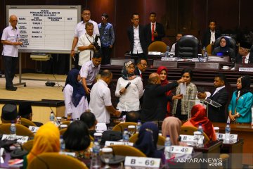 Sejumlah anggota Dewan Perwakilan Daerah (DPD) periode 2019 - 2024 melakukan perhitungan suara untuk memilih ketua pada sidang paripurna DPD di kompleks Parlemen, Senayan, Jakarta, Selasa (1/10/2019). Senator asal Jawa Timur La Nyalla Mahmud Mattalitti terpilih sebagai Ketua DPD periode 2019-2024 dengan memperoleh 47 suara dalam proses pemungutan suara. ANTARA FOTO/Galih Pradipta/aww.