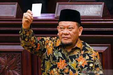 Anggota Dewan Perwakilan Daerah (DPD) periode 2019 - 2024 La Nyalla Mahmud Mattalitti mengikuti pemungutan suara untuk pemilihan ketua pada sidang paripurna DPD di Komplek Parlemen, Senayan, Jakarta, Selasa (1/10/2019). Senator asal Jawa Timur La Nyalla Mahmud Mattalitti terpilih sebagai Ketua DPD periode 2019-2024 dengan memperoleh 47 suara dalam proses pemungutan suara. ANTARA FOTO/Galih Pradipta/aww.