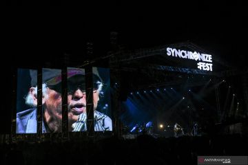 Penyanyi Iwan Fals tampil pada hari kedua Synchronize Fest 2019 di Gambir Expo, Kemayoran, Jakarta, Sabtu (5/10/2019). Pada penampilannya, Iwan Fals membawakan sejumlah lagu hitsnya diantaranya Buku Ini Aku Pinjam, Pesawat Tempurku dan Yang Terlupakan. ANTARA FOTO/Muhammad Adimaja/wsj.