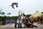 Peserta menampilkan atraksi drum band saat memperingati Hari Sumpah Pemuda di Lapangan Blang Padang, Banda Aceh, Senin (28/10/2019). Peringatan Hari Sumpah Pemuda di Aceh yang melibatkan ribuan pelajar, santri, TNI dan Polri dan Ormas Pemuda itu dimeriahkan dengan atraksi drama kolosal pahlawan Cut Nyak Dhien, drum band, tablig akbar dan deklarasi damai. ANTARA FOTO/Ampelsa/aww.