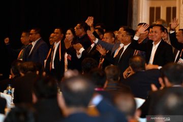 Sejumlah kandidat calon Ketua Umum PSSI mengikuti pembukaan Kongres Luar Biasa (KLB) PSSI di Jakarta, Sabtu (2/11/2019). Agenda KLB PSSI tersebut adalah pemilihan Ketua Umum dan Wakil Ketua Umum PSSI serta pemilihan Anggota Komite Eksekutif PSSI periode 2019-2023. ANTARA FOTO/Sigid Kurniawan/hp.