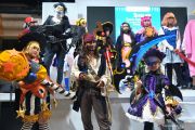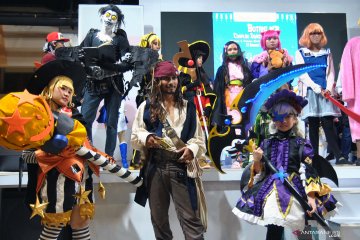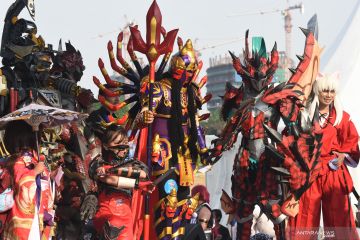 Sejumlah peserta mengikuti acara Jakarta Cosplay Parade 2019 di kawasan Monumen Nasional, Jakarta, Minggu (17/11/2019). Pemerintah Provinsi DKI Jakarta menyelenggarakan Jakarta Cosplay Parade 2019 bertajuk Indonesia Universe yang diikuti lebih dari 1.000 cosplayer untuk menarik wisatawan domestik dan mancanegara. ANTARA FOTO/Indrianto Eko Suwarso/aww.
