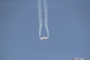 Pesawat Mir-2000 melakukan atraksi di udara pada hari kedua berlangsungnya Dubai AIr Show, di Dubai, Uni Emirat Arab, Senin (18/11/2019). ANTARA FOTO/Reuters-Mahmoud Khaled