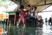 Pengunjung menikmati suasana warung makan yang berada di dalam kolam ikan di Sawahan Lor, Wedomartani, Ngemplak, Sleman, DI Yogyakarta, Sabtu (30/11/2019). Pembuatan warung makan di dalam kolam ikan tersebut menjadi daya tarik bagi masyarakat dan wisatawan saat berkunjung ke Yogyakarta. ANTARA FOTO/Hendra Nurdiyansyah/wsj.