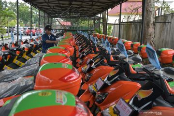 Pegawai memeriksa kesiapan armada motor Samsat Tanjak di Kantor Badan Pendapatan Daerah Riau, di Kota Pekanbaru, Selasa (3/12/2019). Pemprov Riau mulai meluncurkan layanan Samsat Tanjak yang merupakan singkatan dari Transaksi Antar Jemput Antarkampung, mulai awal tahun 2020 untuk menjemput bola wajib pajak kendaraan bermotor hingga ke permukiman warga. ANTARA FOTO/FB Anggoro/aww.