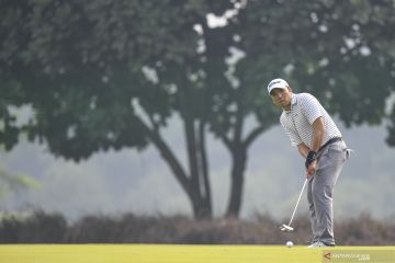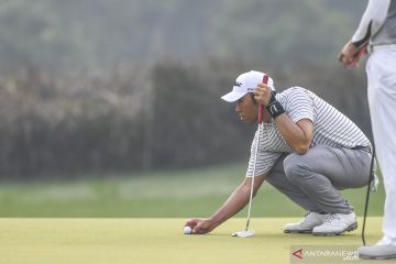 Pegolf Indonesia Rory Hie mengamati posisi bola pada turnamen BNI Indonesian Masters 2019 di Royale Jakarta Golf Club, Jakarta, Kamis (12/12/2019). Rory Hie yang pernah menjuarai Asian Tour di ajang Classic Golf and Country Club International Championship 2019 di India ini menjadi pegolf unggulan Indonesia di turnamen tersebut. ANTARA FOTO/Hafidz Mubarak A/hp.
