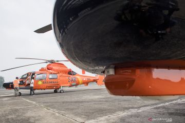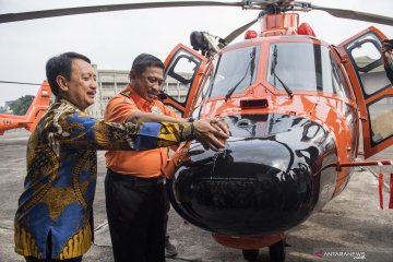 Petugas memeriksa helikopter Medium Intermediate AS365 N3+ Dauphin sebelum diserahterimakan ke Badan Nasional Pencarian dan Pertolongan (BASARNAS) di Hanggar Rotary Wing PT Dirgantara Indonesia (Persero) (PTDI) di Bandung, Jawa Barat, Kamis (12/12/2019). PTDI menyerahterimakan dua Helikopter Medium Intermediate AS365 N3+ Dauphin ke BASARNAS yang mana helikopter ini dilengkapi dengan Hoist untuk menarik atau mengevakuasi korban pada sisi pintu kanan. ANTARA FOTO/M Agung Rajasa/hp.