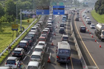 Sejumlah kendaraan memadati jalur Puncak, Bogor, Jawa Barat, Sabtu (21/12/2019). Memasuki libur Natal dan Tahun Baru 2020 wisatawan mulai memadati jalur Puncak Bogor. Polres Bogor memberlakukan rekayasa lalu lintas sistem buka tutup serta contraflow di Tol Jagorawi untuk mengurai kemacetan. ANTARA FOTO/Yulius Satria Wijaya/ama.