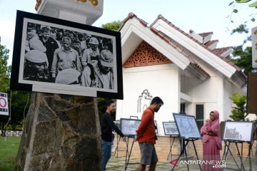 Pengunjung mengamati foto peristiwa bencana gempa dan tsunami yang dipamerkan di ruang terbuka Taman Putroe Phang, Banda Aceh, Kamis (26/12/2019). Pameran foto yang digelar Pewarta Foto Indonesia (PFI) Aceh selama sehari itu dalam rangka memperingati 15 tahun peristiwa Gempa dan Tsunami yang terjadi pada 26 Desember. ANTARA FOTO/Ampelsa/pras.