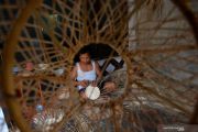 Perajin Ma'arif (38) menyelesaikan pembuatan piring ayaman rotan di Tambakberas, Kabupaten Jombang, Jawa Timur, Jumat (27/12/2019). Hasil kerajinan rotan industri rumahan itu selanjutnya dipasarkan secara online dengan harga mulai Rp3 ribu hingga Rp80 ribu per biji tergantung tingkat kesulitan serta ukuran. ANTARA FOTO/Syaiful Arif/ama.