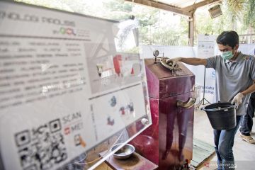 Pekerja memasukkan air kedalam mesin pengolahan hidrotermal di Guna Olah Limbah (GOL) Lab, Kota Baru Parahyangan, Padalarang, Kabupaten Bandung Barat, Jawa Barat, Kamis (15/1/2020). Program CSR Softex Indonesia bekerjasama dengan Guna Olah Limbah untuk mendaur ulang sampah popok bayi bekas pakai menjadi sesuatu yang bernilai seperti pokbrick dan substitusi minyak tanah. ANTARA FOTO/M Agung Rajasa/hp.