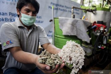 Pekerja menunjukkan hasil olahan popok bekas pakai dengan mesin hidrotermal di Guna Olah Limbah (GOL) Lab, Kota Baru Parahyangan, Padalarang, Kabupaten Bandung Barat, Jawa Barat, Kamis (15/1/2020). Program CSR Softex Indonesia bekerjasama dengan Guna Olah Limbah untuk mendaur ulang sampah popok bayi bekas pakai menjadi sesuatu yang bernilai seperti pokbrick dan substitusi minyak tanah. ANTARA FOTO/M Agung Rajasa/hp.