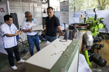 Direktur PT Softex Indonesia Djali Halim (kiri) dan Direktur Chrisdianto Tedjawidjaja (tengah) berbincang dengan Direktur Guna Olah Limbah Archie Satya Nugroho, saat meninjau mesin hidrotermal pengolahan sampah popok bekas pakai di Guna Olah Limbah (GOL) Lab, Kota Baru Parahyangan, Padalarang, Kabupaten Bandung Barat, Jawa Barat, Kamis (15/1/2020). Program CSR Softex Indonesia bekerjasama dengan Guna Olah Limbah untuk mendaur ulang sampah popok bayi bekas pakai menjadi sesuatu yang bernilai seperti pokbrick dan substitusi minyak tanah. ANTARA FOTO/M Agung Rajasa/hp.