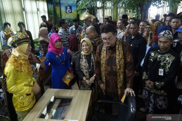 Menteri Pendayagunaan Aparatur Negara dan Reformasi Birokrasi Tjahjo Kumolo (kedua kanan) didampingi Bupati Batang Wihaji (kanan) meninjau ruangan usai peresmian Mall Pelayanan Publik di Kantor Dinas Penanaman Modal Perizinan dan Pelayanan Terpadu (DPMPPT), Kabupaten Batang, Jawa Tengah, Kamis (23/1/2020). Pemerintah Kabupaten Batang berinovasi membuat Mall Pelayanan Publik dengan konsep hutan di dalam ruangan yang memberikan 329 pelayanan publik yang terintegrasi sehingga dapat memudahkan warga dalam mengurus segala administrasi publik. ANTARA FOTO/Harviyan Perdana Putra/pras.