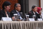 Gubernur Bank Indonesia Perry Warjiyo (kedua kiri) didampingi Deputi Gubernur Senior Destry Damayanti (kiri) beserta dua Deputi Gubernur Erwin Rijanto (kedua kanan) dan Rosmaya Hadi (kanan) memberikan keterangan pers hasil rapat dewan gubernur BI bulan Januari 2020 di Jakarta, Kamis (23/1/2020). Bank Indonesia memutuskan untuk mempertahankan tingkat bunga acuan BI 7-Day Reverse Repo Rate (BI7DRR) sebesar lima persen. ANTARA FOTO/Akbar Nugroho Gumay/hp.