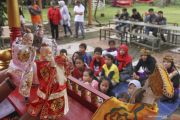 Sejumlah anak-anak menyaksikan pertunjukan Wayang Potehi di Taman Kaldera, Jatijajar, Depok, Jawa Barat, Minggu (26/1/2020). Komunitas Rumah Cinwa mengadakan kegiatan mengenalkan dan mempertunjukkan Wayang Potehi yang merupakan kesenian peranakan China di Indonesia. ANTARA FOTO/Asprilla Dwi Adha/pras.