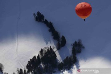 Sebuah balon udara terbang di acara Alpine Ballooning 2020 di pegunungan dekat Kossen, Austria, Senin (27/1/2020). ANTARA FOTO/REUTERS/Angelika Warmuth/wsj.