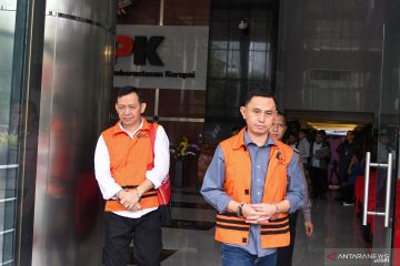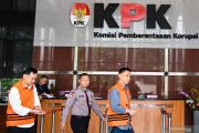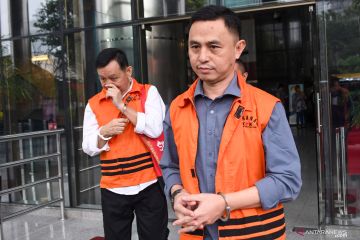 Tersangka mantan Kadis PUPR Lampung Utara Syahbuddin (kiri) dan mantan Kadis Perdagangan Lampung Utara Wan Hendri (kanan) berjalan meninggalkan ruangan usai menjalani pemeriksaan lanjutan di gedung KPK, Jakarta, Senin (3/2/2020). Berkas perkara tersangka perantara suap kepada tersangka mantan Bupati Lampung Utara Agung Ilmu Mangkunegara terkait kasus dugaan suap proyek pada Dinas PUPR dan Dinas Perdagangan Kabupaten Lampung Utara telah lengkap (P21) dan siap untuk disidangkan di Pengadilan Tindak Pidana Korupsi. ANTARA FOTO/M Risyal Hidayat/foc.ANTARA FOTO/M RISYAL HIDAYAT (ANTARA FOTO/M RISYAL HIDAYAT)