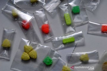 Pil ekstasi berbentuk wajah presiden Amerika Serikat Donald Trump yang berhasil disita oleh pihak berwenang di daerah Concepcion, Chile, Rabu (5/2/2020) waktu setempat. ANTARA FOTO/REUTERS/Jose Luis Saavedra/pras.