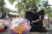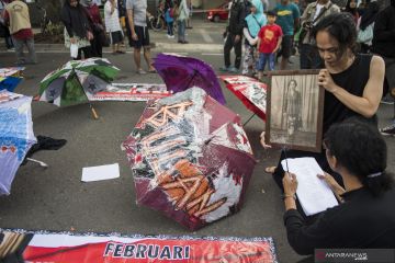 Seniman melakukan aksi teaterikal saat peringatan Bulan Cinta Ibu Bangsa Inggit Garnasih di Bandung, Jawa Barat, Minggu (9/2/2020). Aksi teaterikal tersebut merupakan rangkaian kegiatan untuk memperingati kelahiran Inggit Garnasih istri kedua dari Presiden Soekarno pada 17 Februari mendatang dan mengenalkan kembali jasa perjuangan beliau dalam merintis kemerdekaan Indonesia kepada masyarakat luas. ANTARA FOTO/M Agung Rajasa/foc.