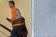 Tersangka mantan Komisioner KPU Wahyu Setiawan bersiap menjalani pemeriksaan di gedung KPK, Jakarta, Jumat (14/2/2020). KPK memeriksa Wahyu Setiawan dalam kasus dugaan korupsi penetapan pergantian antar waktu (PAW) anggota DPR periode 2019-2024. ANTARA FOTO/M Risyal Hidayat/aww.