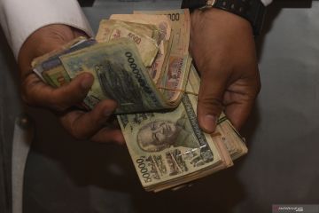 Petugas menunjukkan uang Rupiah palsu yang akan dimusnakan di Jakarta, Rabu (26/2/2020). Bank Indonesia bersama Bareskrim Polri memusnahkan sebanyak 50.087 lembar uang Rupiah palsu hasil temuan dari proses pengolahan uang dan klarifikasi masyarakat rentang Januari 2017 hingga Januari 2018. FOTO ANTARA/Puspa Perwitasari/hp.