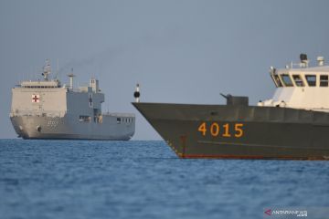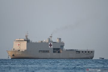 KRI dr Soeharso yang membawa 69 WNI ABK Diamond Princess tiba di perairan sekitar Pulau Sebaru Kecil, Kepulauan Seribu, Jakarta, Senin (2/3/2020). Sebanyak 69 WNI tersebut masih harus menunggu hasil screening Polymerase Chain Reaction (PCR) untuk memastikan mereka terbebas dari virus corona sebelum menjalani masa observasi di Pulau Sebaru Kecil. ANTARA FOTO/Akbar Nugroho Gumay/wsj.