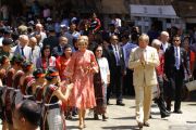 Raja Belanda Willem Alexander bersama Ratu Maxima Zorreguieta Cerruti disambut tarian tor-tor oleh masyarakat Batak ketika berkunjung di Dusun Siambat Dalan, Desa Lintong Nihuta, Kecamatan Tampahan, Kabupaten Toba, Sumatera Utara, Kamis (12/3/2020). Selain berwisata di Danau Toba, Raja dan Ratu Belanda juga mengunjungi rumah adat Batak yang usianya sudah mencapai ratusan tahun sekaligus bersilaturahmi dengan masyarakat. ANTARA FOTO/Septianda Perdana/ama.
