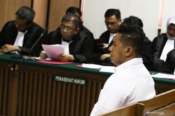 Terdakwa kasus penyiraman air keras kepada penyidik KPK Novel Baswedan, Rahmat Kadir Mahulette menjalani sidang dakwaan di Pengadilan Negeri Jakarta Utara, Jakarta, Kamis (19/3/2020). Kedua terdakwa Ronny Bugis dan Rahmat Kadir Mahulette didakwa melakukan penganiayaan berat terencana dengan hukuman maksimal 12 tahun penjara. ANTARA FOTO/Rivan Awal Lingga/foc.