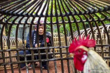 Peternak menunjukan ayam Tibet (Pheasant) di Peternakan ayam hias Padepokan Farm 212, Desa Mekargalih, Ciganea, Purwakarta, Jawa Barat, Minggu (22/3/2020). Peternakan tersebut membudidayakan ayam hias seperti ayam Tibet, ayam Cemani, ayam Bangkok dan ayam Brahma untuk memperkenalkan kepada masyarakat berbagai jenis ayam hias dan berencana membuat pusat ayam hias Indonesia. ANTARA FOTO/M Ibnu Chazar/aww.