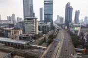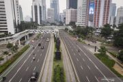 Foto udara kendaraan melintas di kawasan Jalan Jendral Sudirman, Jakarta, Sabtu (28/3/2020). Kepala Dinas Lingkungan Hidup Pemprov DKI Andono Warih menyatakan adanya perbaikan kualitas udara di Jakarta yang salah satunya disebabkan penerapan bekerja dari rumah untuk mencegah meluasnya penyebaran COVID-19. ANTARA FOTO/Dhemas Reviyanto/hp.