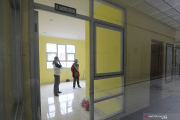 Sejumlah tim kesehatan dan relawan mengecek ruangan rumah sakit darurat di Mojosongo, Boyolali, Jawa Tengah, Jumat (3/4/2020). Sejumlah anggota tim dinas kesehatan, relawan, TNI, Polri, dan PMI mengikuti kegiatan itu guna mempersiapkan prosedur penangan pasien dalam pengawasan (PDP) COVID-19 yang dirawat di rumah sakit darurat tersebut. ANTARA FOTO/Aloysius Jarot Nugroho/hp.