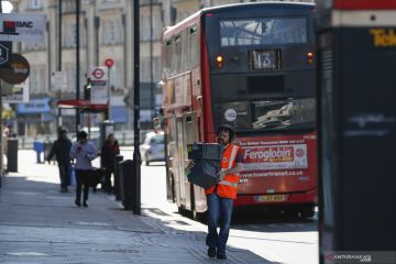 Seorang kurir mengantarkan paket di London, Inggris, Selasa (21/4/2020). Sebanyak 823 pasien yang dinyatakan positif COVID-19 dilaporkan meninggal di rumah sakit di Inggris pada Senin (20/4) sore waktu setempat, menambah jumlah kematian terkait coronavirus menjadi 17.337, demikian diungkapkan Departemen Kesehatan dan Perawatan Sosial Inggris pada Selasa (21/4). Hingga Selasa pagi waktu setempat, total 129.044 orang telah dinyatakan positif COVID-19, dengan peningkatan harian sebanyak 4.301 kasus, papar departemen itu. ANTARA FOTO/Xinhua-Han Yan/hp.