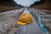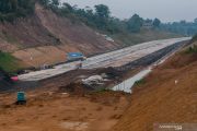 Suasana proyek pembangunan jalan layang tol yang berhenti sementara di Desa Kalanganyar, Lebak, Banten, Jumat (24/4/2020). Menteri PUPR Basuki Hadimuljono memutuskan untuk menghentikan sementara pekerjaan pembangunan jalan tol Serang-Panimbang dalam rangka pencegahan penyebaran COVID-19 selama 14 hari berlaku sejak pengajuan surat usulan penghentian sementara oleh Direktur Jenderal (Dirjen) Bina Marga. ANTARA FOTO/Muhammad Bagus Khoirunas/foc.