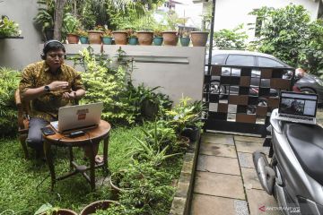 Sekretaris Jenderal Aliansi Jurnalis Independen (AJI) Revolusi Riza menyampaikan pandangannya pada acara Diskusi Daring Mayday di Sawangan, Depok, Jawa Barat, Jumat (1/5/2020). Pada diskusi yang dilakukan sebagai aksi peringatan Hari Buruh Internasional 2020 tersebut AJI menyuarakan beberapa tuntutan yaitu jaminan keselamatan kerja jurnalis saat meliput COVID-19, tolak PHK jurnalis, bayar gaji jurnalis dan tolak Omnibus Law. ANTARA FOTO/Muhammad Adimaja/foc.