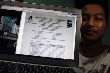 Seorang siswa Madrasah Aliyah melihat pengumuman kelulusannya melalui daring yang dikirim pihak sekolah di Ciledug, Tangerang, Banten, Sabtu (2/5/2020). Kementerian Pendidikan dan Kebudayaan mengumumkan kelulusan siswa SMA dan sederajatnya melalui daring secara serentak di Indonesia untuk menghindari tatap muka di tengah pandemi COVID-19. ANTARA FOTO/Muhammad Iqbal/wsj.