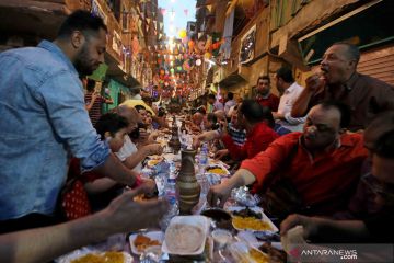 FOTO ARSIP: Warga kampung Ezbet Hamada di Distrik Mataria berkumpul saat menyantap makanan berbuka puasa di bulan suci Ramadhan di Kairo, Mesir, Senin (20/5/2019). ANTARA FOTO/REUTERS/Mohamed Abd El Ghany/Foto Arsip/wsj.