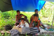 Warga Suku Anak Dalam (SAD) atau Orang Rimba Jambi berada di bawah tenda seadanya di perkebunan kelapa sawit Pelepat, Bungo, Jambi, Selasa (19/5/2020). Puluhan Orang Rimba dari 118 jiwa yang biasa menetap di perumahan SAD dampingan SSS Pundi Sumatera di daerah itu memilih tinggal sementara di kawasan perkebunan karena khawatir terhadap pandemi COVID-19. ANTARA FOTO/Wahdi Septiawan/pras.