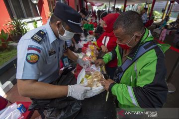 Petugas sipir memeriksa barang bawaan keluarga yang akan diberikan kepada warga binaan Lembaga Pemasyarakatan Kelas I Cipinang di Jakarta, Senin (25/5/2020). Kementerian Hukum dan HAM meniadakan kunjungan secara fisik terhadap warga binaan Lapas maupun Rutan saat Hari Raya Idul Fitri 1441 Hijriah untuk mengantisipasi penyebaran COVID-19 dan menggantikannya dengan menyediakan fasilitas komunikasi berbasis panggilan video. ANTARA FOTO/Aditya Pradana Putra/pras.